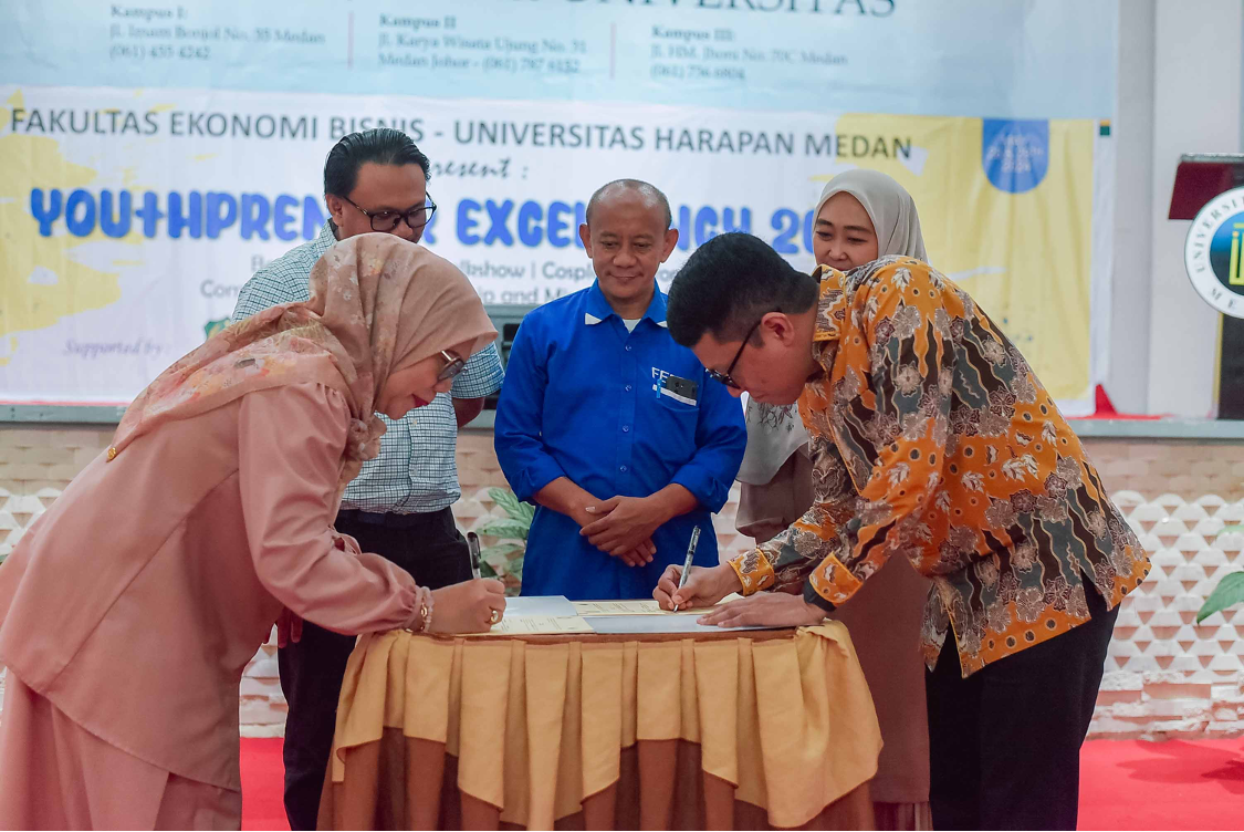 Fakultas Ekonomi dan Bisnis Universitas Potensi Utama Fakultas Ekonomi Bisnis Universitas Harapan (UnHar) Medan memiliki sejumlah program kerjasama unggulan yang dirancang untuk meningkatkan kualitas pendidikan dan memperluas jaringan profesional bagi mahasiswa dan dosennya. Salah satu program unggulan adalah kerjasama dengan Indonesian Stock Exchange, yang memberikan kesempatan bagi mahasiswa untuk mempelajari dinamika pasar modal secara langsung melalui seminar, workshop, dan kunjungan ke bursa efek. Selain itu, kerjasama dengan PT Korean Investment and Sekuritas Indonesia membuka peluang bagi mahasiswa untuk mendapatkan pengalaman praktis dalam industri sekuritas dan investasi melalui magang dan program pelatihan yang intensif. Fakultas juga bekerjasama dengan Ikatan Sarjana Ekonomi Indonesia (ISEI), yang memberikan akses kepada mahasiswa dan dosen untuk mengikuti berbagai kegiatan akademik dan profesional seperti konferensi, penelitian bersama, dan jaringan dengan para profesional ekonomi terkemuka di Indonesia. Kerjasama-kerjasama ini tidak hanya meningkatkan kualitas pembelajaran, tetapi juga mempersiapkan mahasiswa untuk terjun ke dunia kerja dengan kompetensi dan jaringan yang kuat.